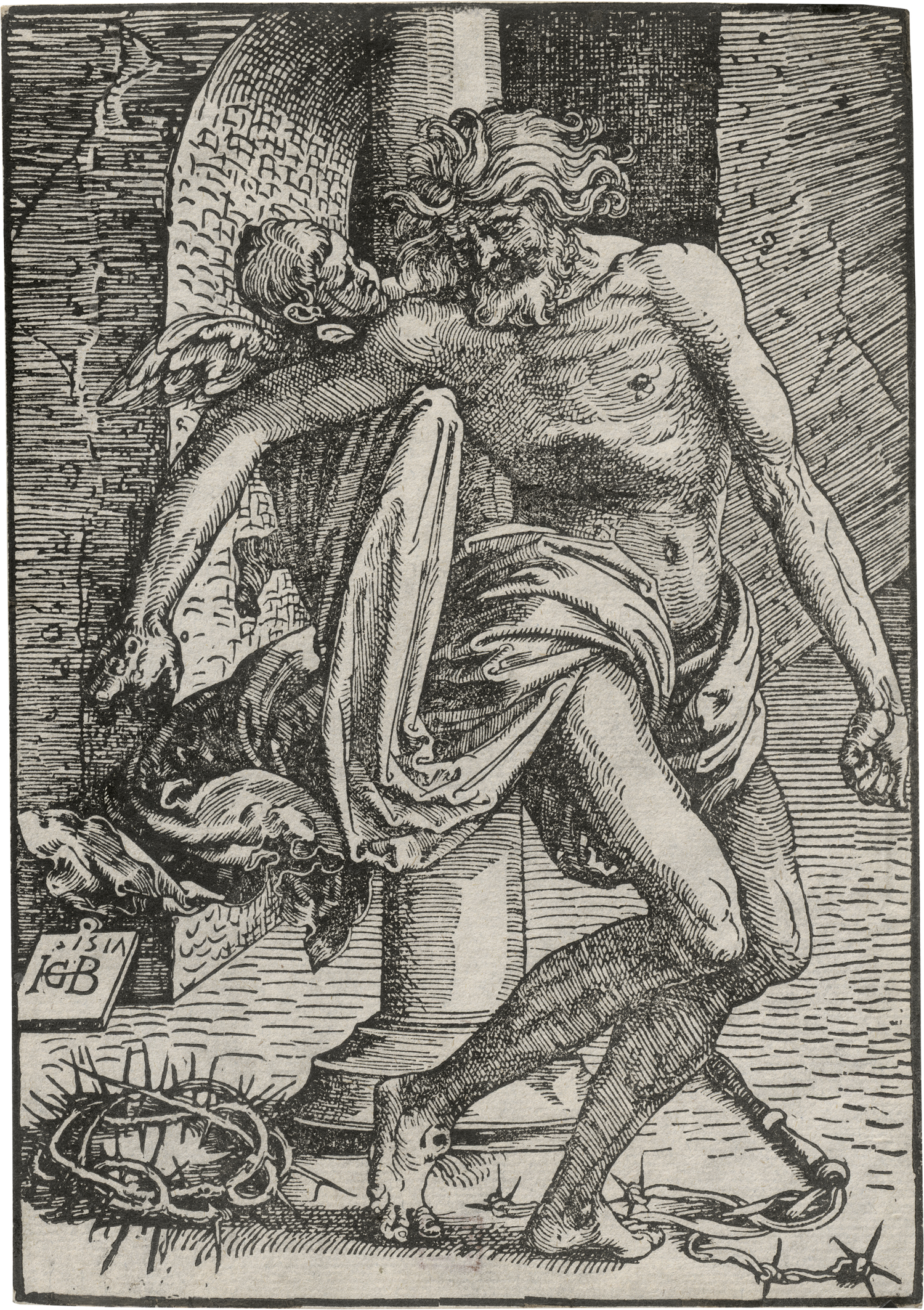(gen. Grien, 1476 Weyersheim bei Straßburg - 1545 Straßburg)Christus an der Martersäule mit den Passionsinstrumenten, von einem Engel getragen