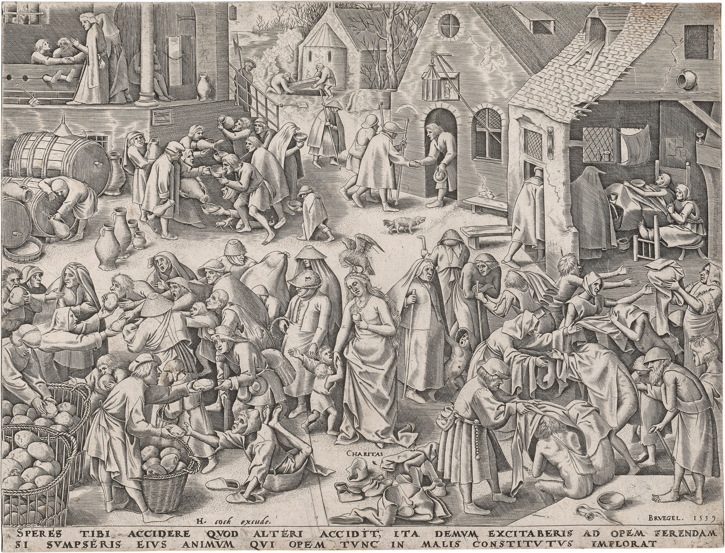 nach. Charitas. Kupferstich von Philips Galle. 22,2 x 29,1 cm. 1559. Hollstein (Bruegel) 134, Bastelaer 134, Riggs 32, Orenstein (New Hollstein, Bruegel) 15, Sellink (New Hollstein, Galle) 311, Bassens/Grieken 13 c.
