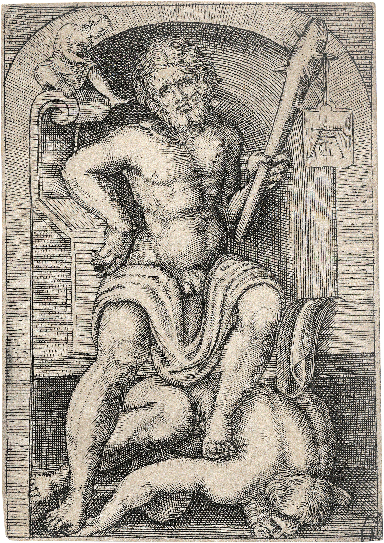 zugeschrieben. Herkules besiegt Cacus. Kupferstich. 8,3 x 5,8 cm. B. App. V, Mielke (New Hollstein, Aldegrever), rejected prints S. 236.