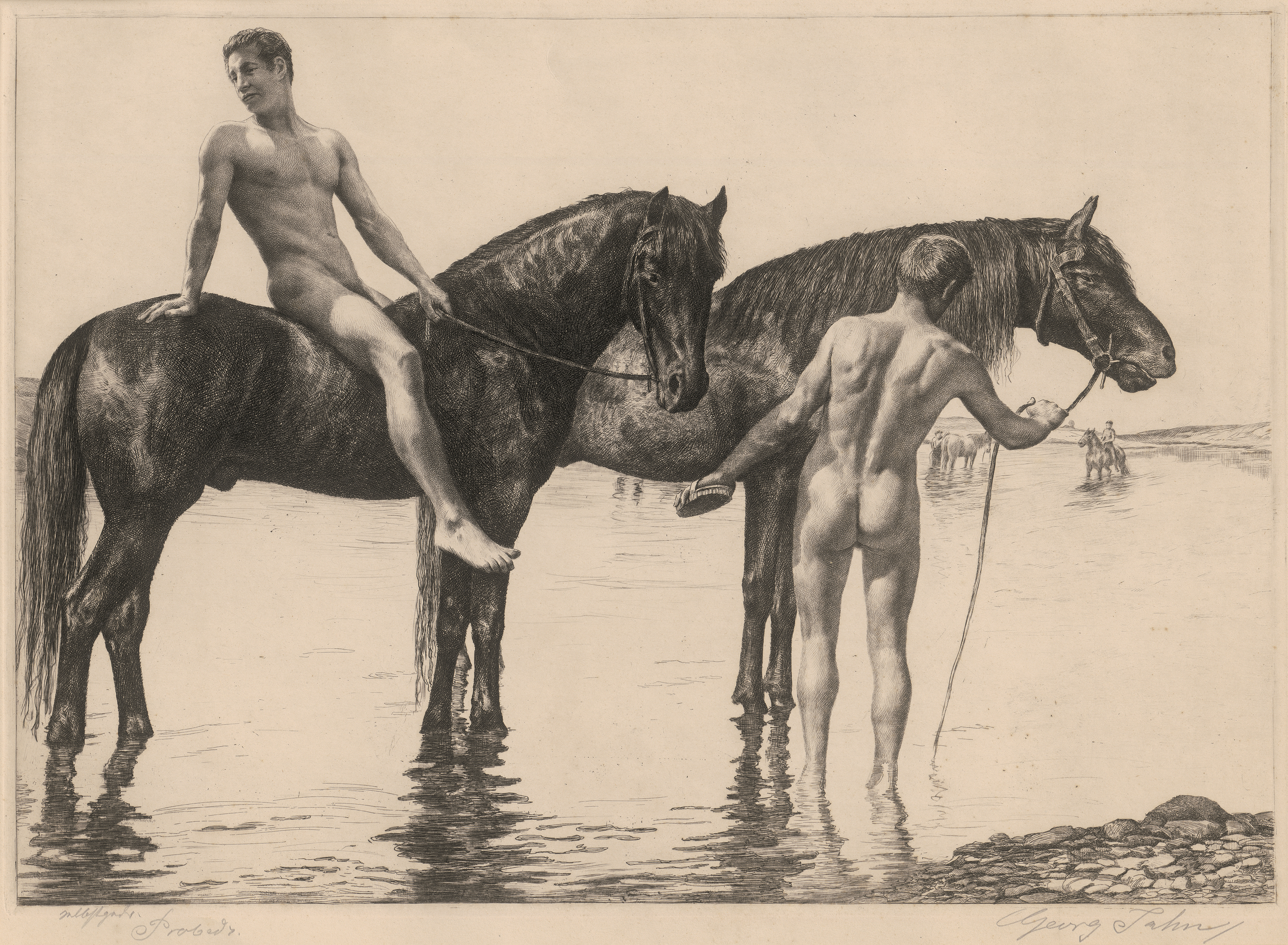 (1869 Meißen - 1941 Dresden-Loschwitz)"Pferdeschwemme" (Zwei Reiter am Ufer)
