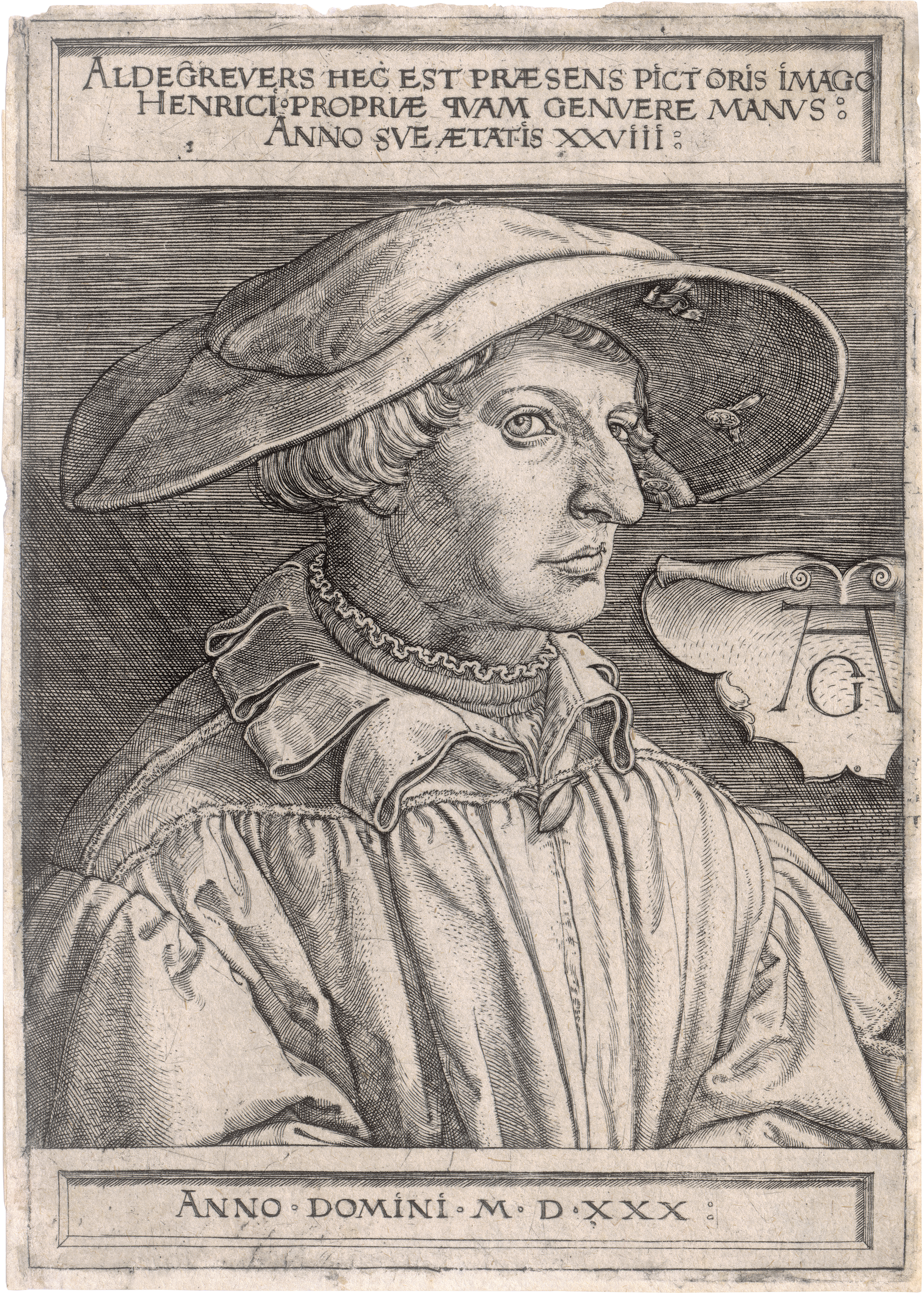 Selbstbildnis mit 28 Jahren. Kupferstich. 14,7 x 10,2 cm. 1530. B. 188, Mielke (New Hollstein) 188 II. Wz. Bandenwäppchen.