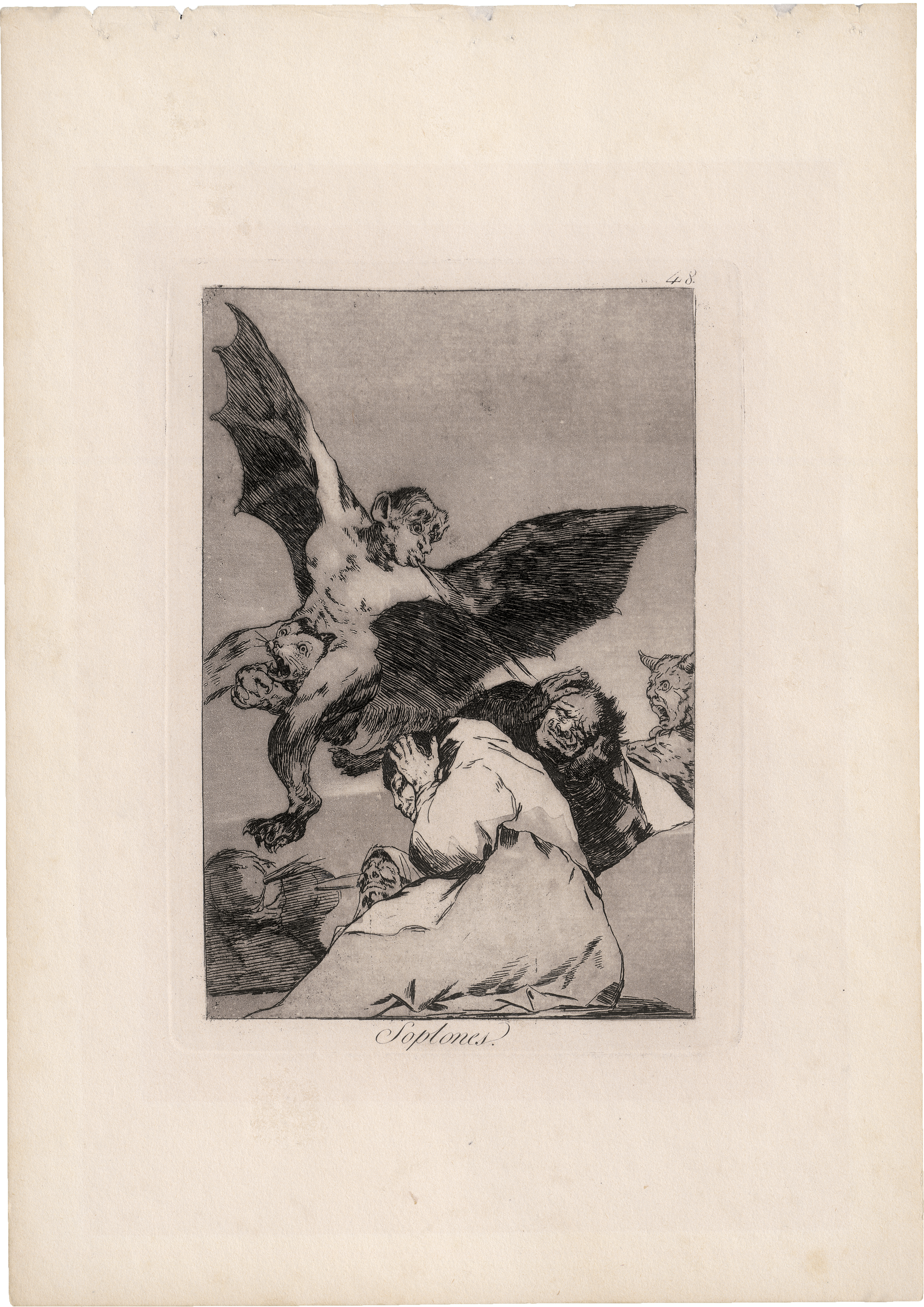 Soplones. Radierung mit Aquatinta auf Velin. 20,7 x 14,9 cm (Plattenrand); 34,1 x 23,9 cm (Blattgröße). Delteil 85, Harris 83 III, 4.-9. Ausgabe (von 12).