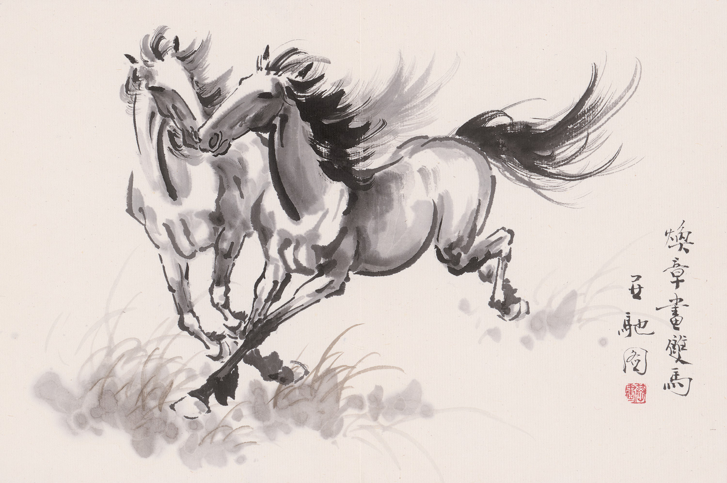 Leporello-Album mit acht Pferdedarstellungen von dem berühmten Meister Xú Beihóng (1895-1953), der für seine Bewegungsstudien von Tieren, besonders von Pferden, bekannt wurde und zu den ersten Malern gehörte, die sich in ihrem Oeuvre von Einflüssen der europäischen Malerei inspirieren ließen. Dabei stehen die Pferde symbolisch für die Renaissance der Stärke des chinesischen Volkes nach jahrzehntelanger Demütigung durch die westlichen Mächte und allen voran dem "verwestlichten" Japan. Die hier dargestellten Pferde sind in den 30er Jahren entstanden und gehören zum Hauptwerk Beihóngs.
