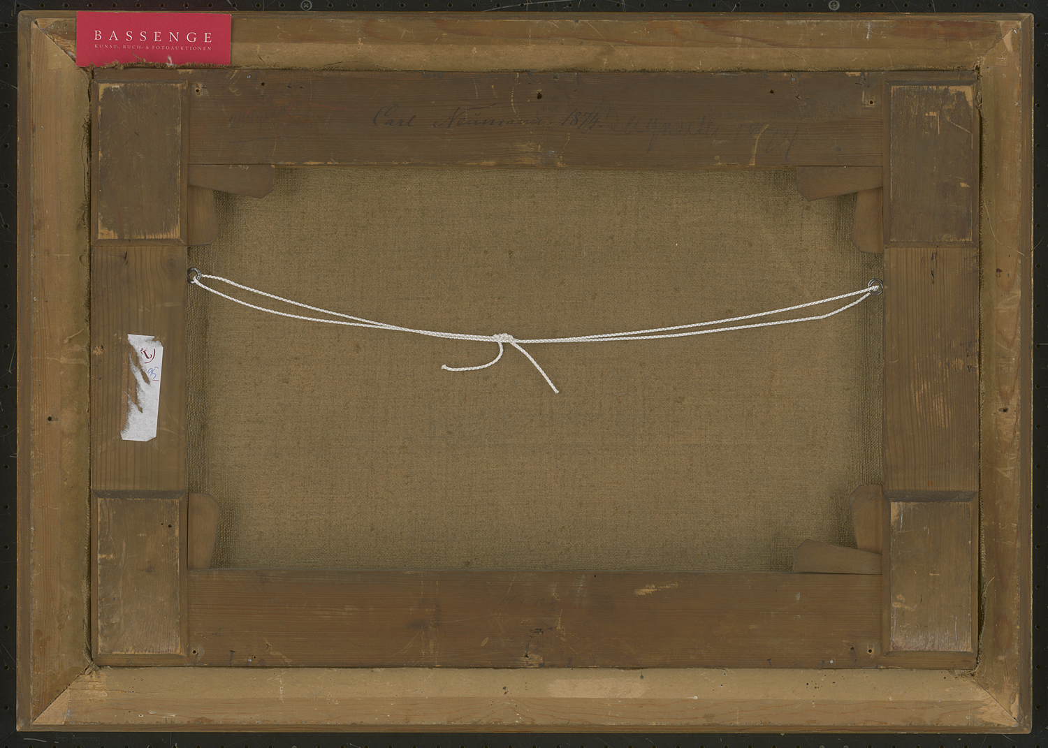 Öl auf Leinwand. 35 x 51,7 cm. Unten rechts undeutlich signiert, verso auf dem Keilrahmen signiert und datiert "Carl Neumann 1874.".
