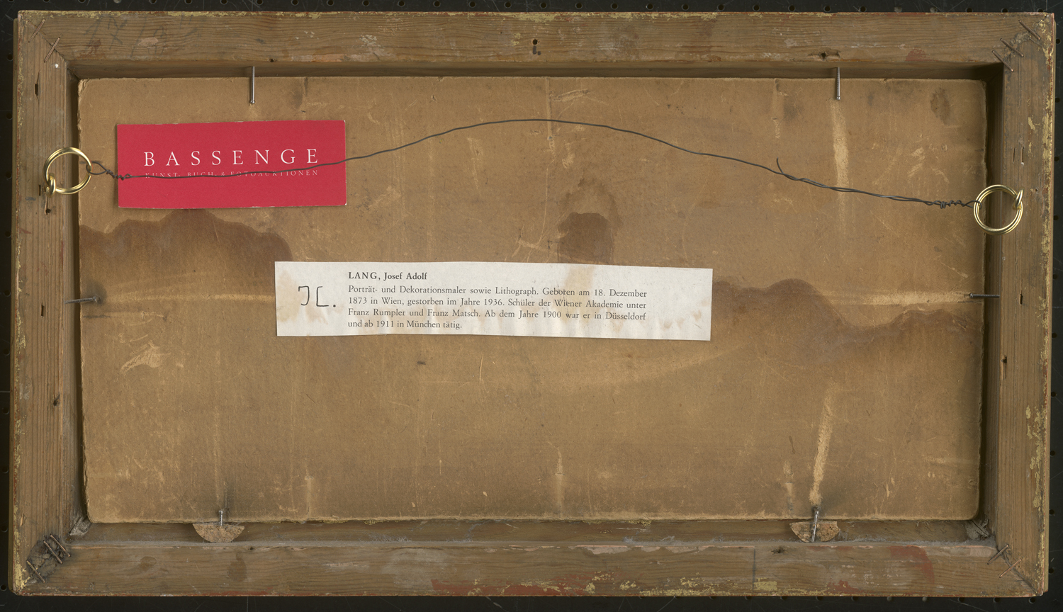 Öl auf Malkarton. 17,5 x 35,5 cm. Unten links signiert "J... Adolf Lang".