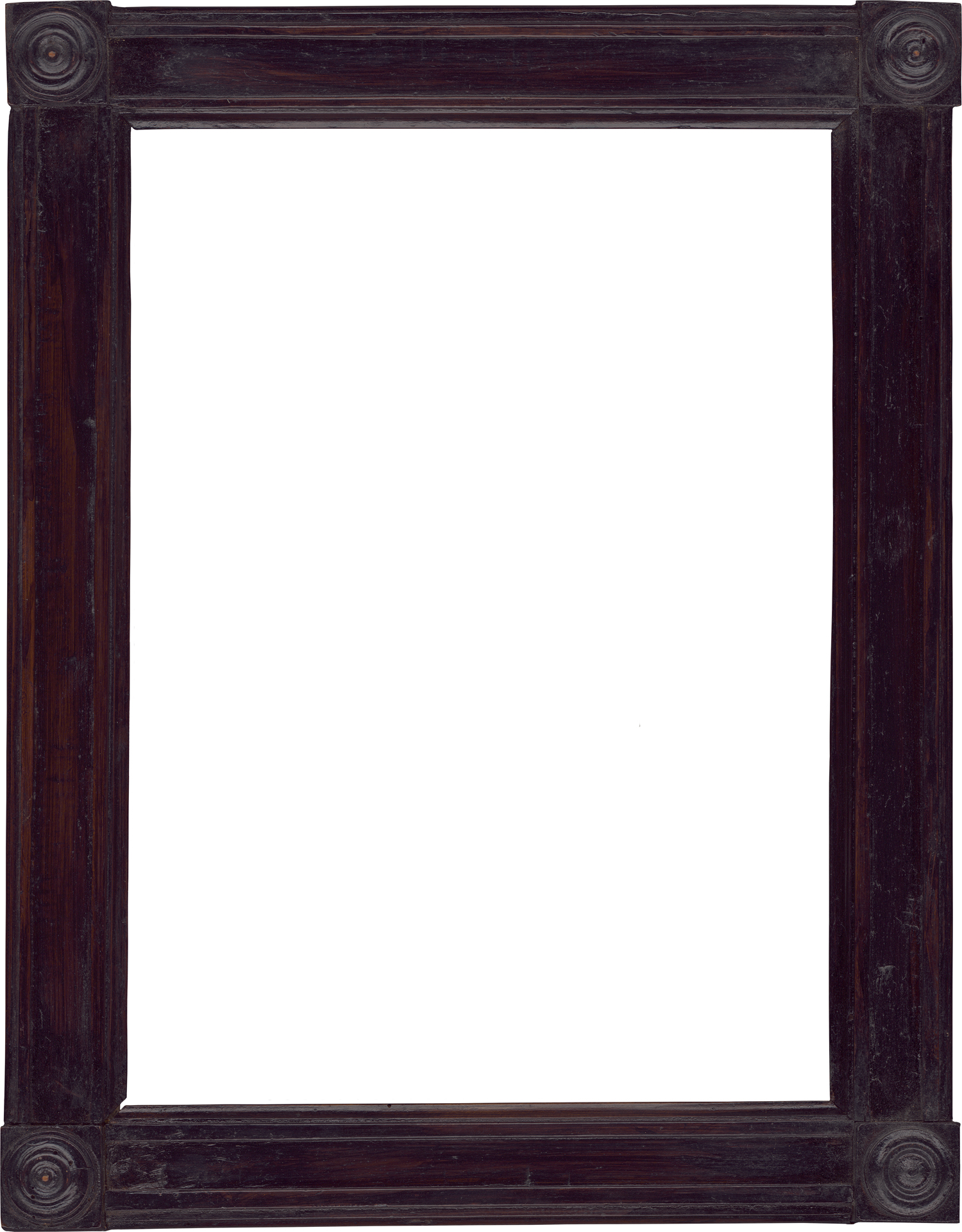 ebonisiert, Sichtleiste ansteigendes Profil, Vierkant, glatte Fläche, Vierkant, mit Quadraten und aufgesetzen Rundmotiven in den Ecken.