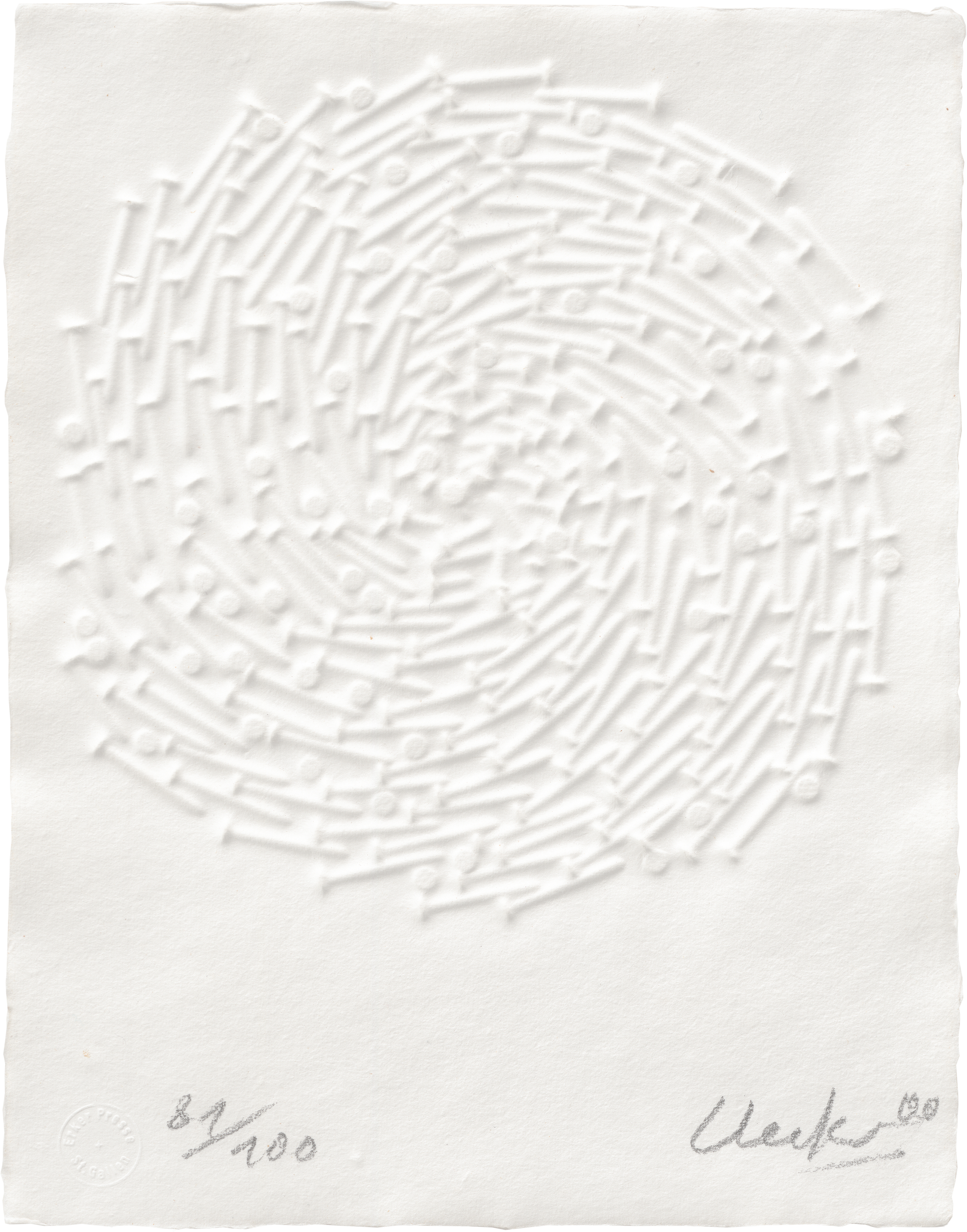 Signiert "Uecker" und datiert. Auflage 100 num. Ex.