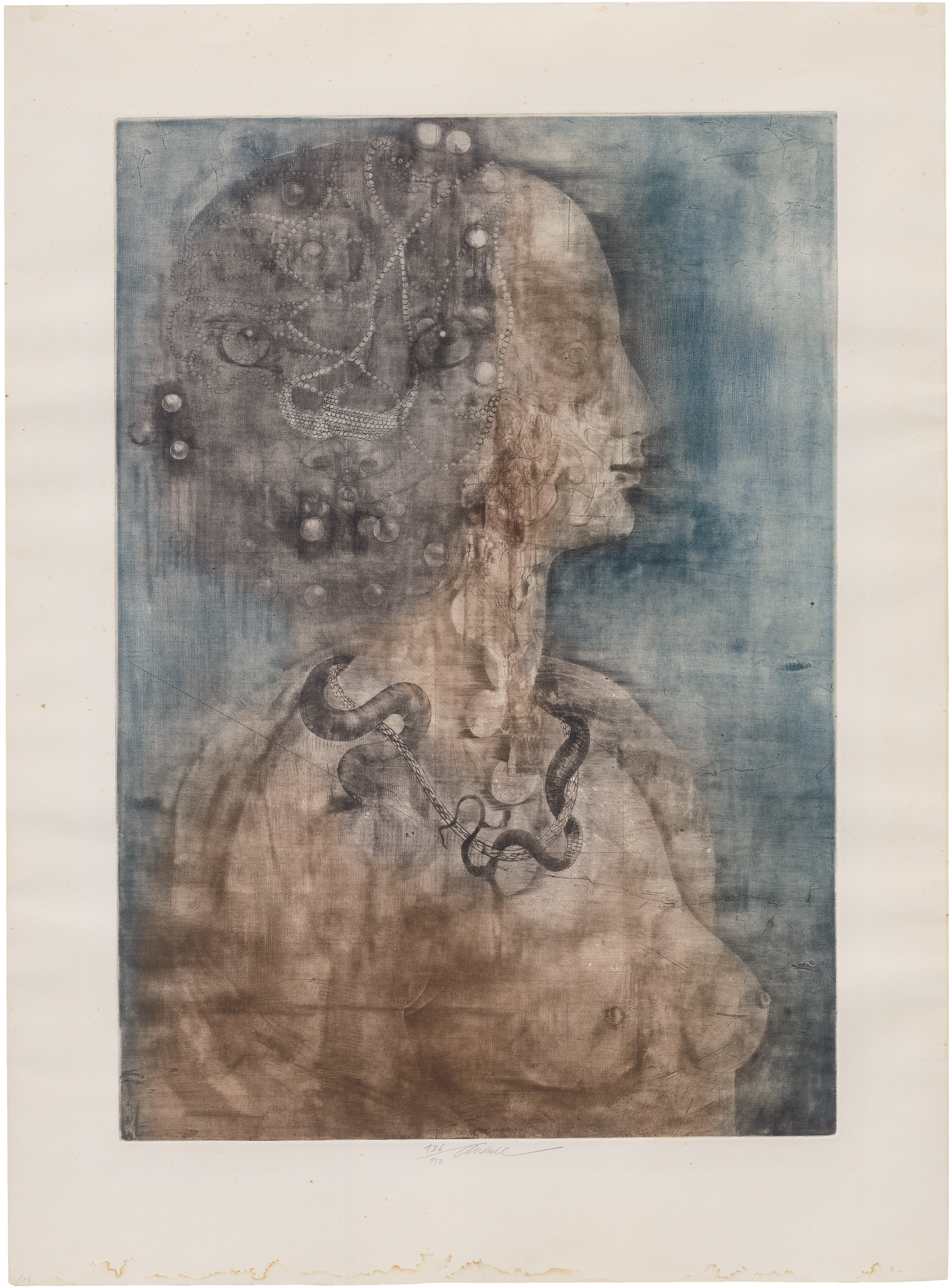 Das Motiv des Profilbildnisses von Simonetta Vespucci nach Piero di Cosimo entstammt Anderles Serie "Dialogue with the Great Masters", in der er es bereits 1982 zuerst verwendete. Ausgezeichneter Druck mit breitem Rand.