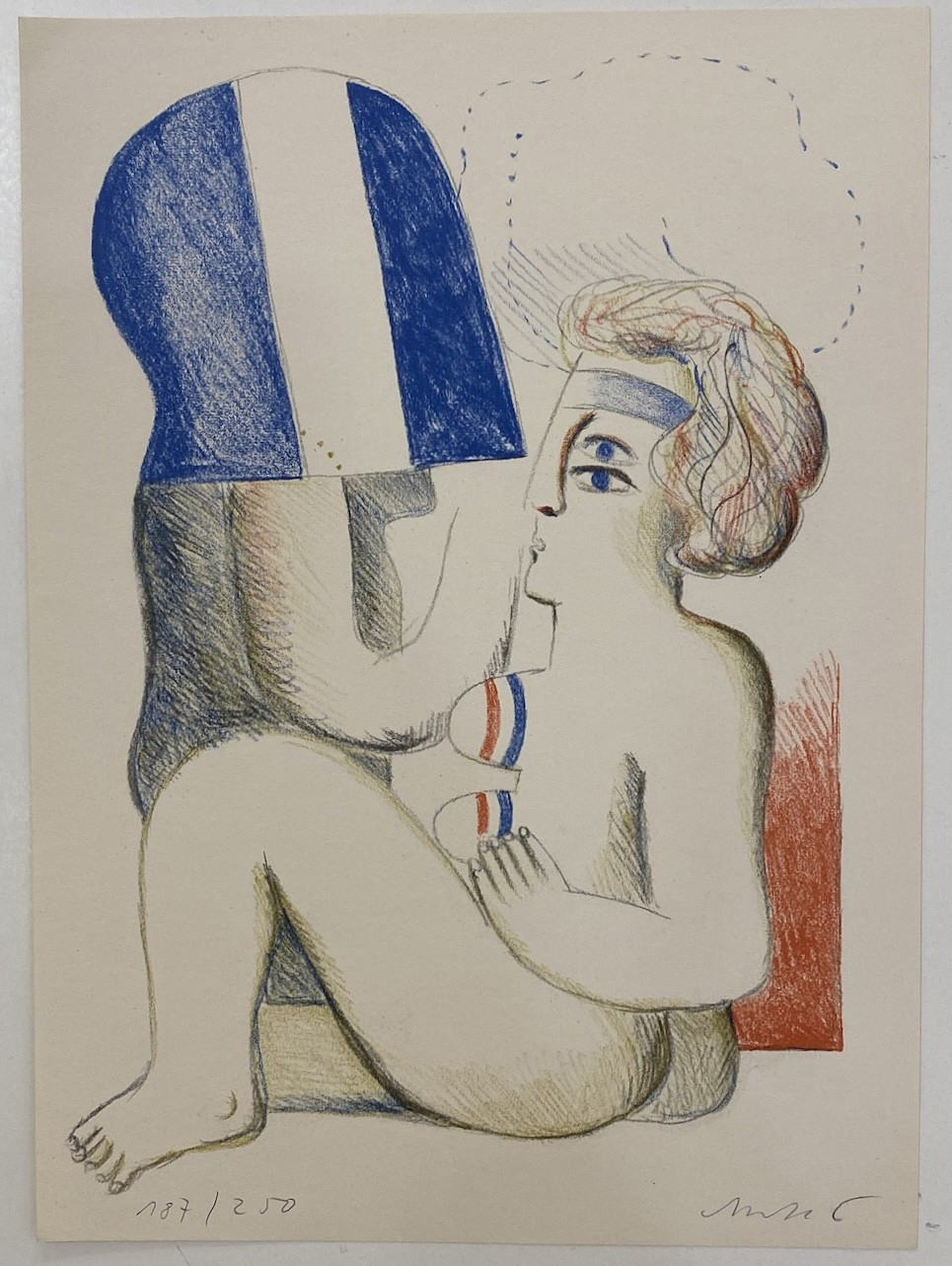 Vorhanden sind die Motive "Paar", 1965, "Kleines Stilleben", 1965, und "Stilleben mit Leiter, Kugel und Rohr", 1970.