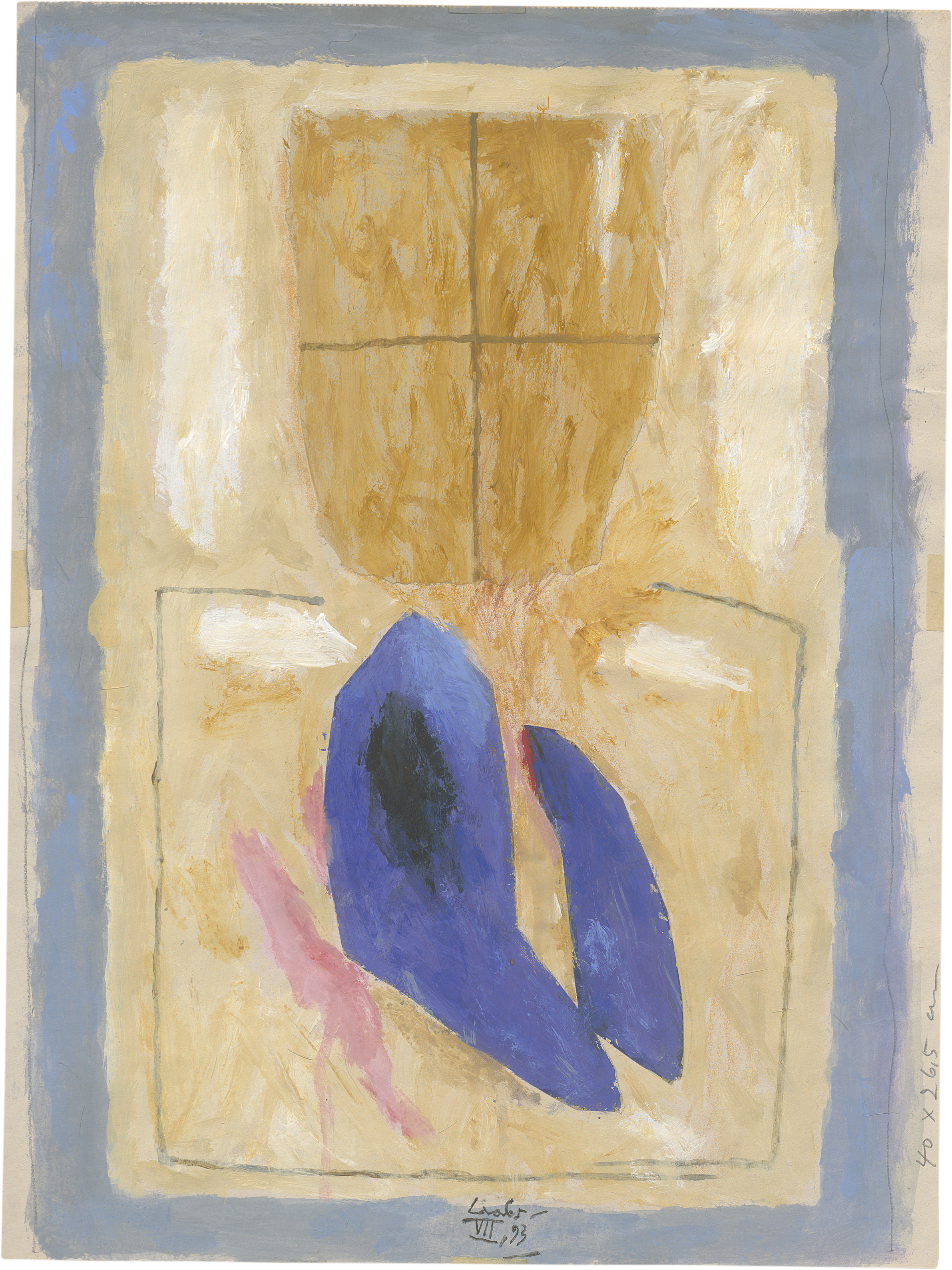 Unten mittig mit Pinsel in Schwarz signiert "Laabs" und datiert, seitlich rechts mit Bleistift mit den Maßangaben, verso auf dem Unterlagekarton mit Bleistift signiert "HANS LAABS" und betitelt.