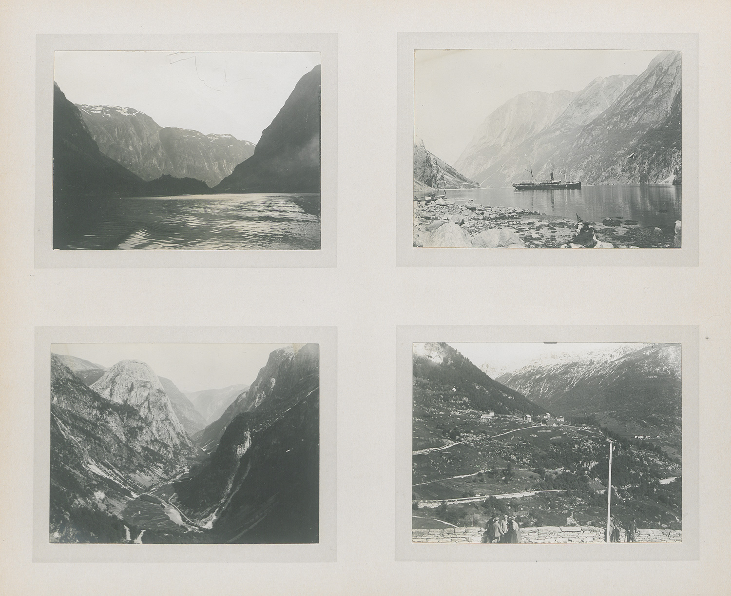 Berger, Arthur. Fotoalbum Skandinavien, Schweizer Alpen, Südfrankreich. Album mit ca. 180 Silbergelatineabzügen (jeweils 7,5 x 11,5 cm). 26 x 32,5 cm. Lose in Leinen-Steckalbum d. Z. (etwas berieben) mit Deckeltitel "Eigene Aufnahmen". Um 1910.