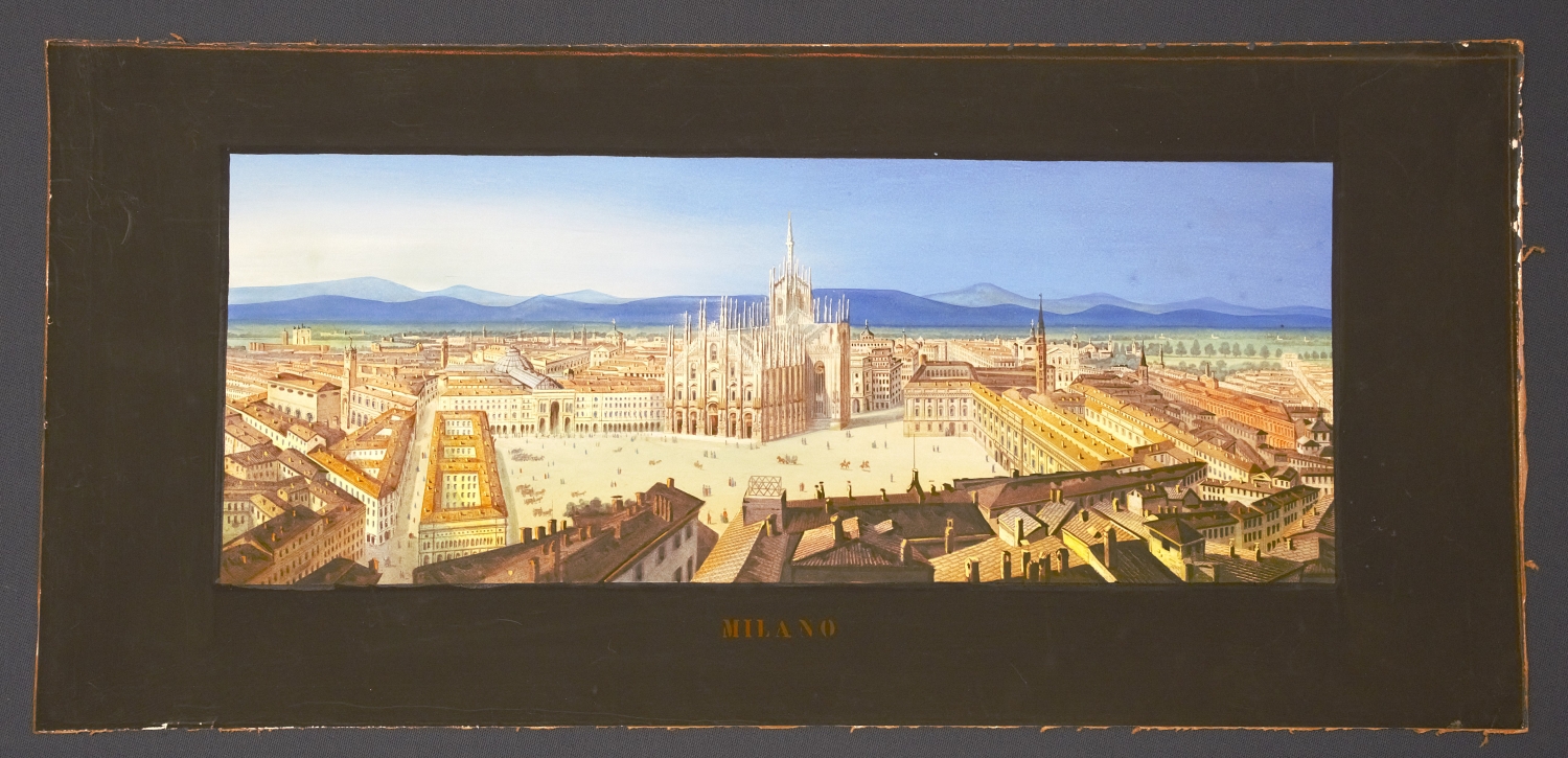 Nicht bei Thieme-Becker. – Schöne Ansichten von Venedig und Mailand, diese doppelt vorhanden, in verschiedenem Kolorit. Mit Darstellungen des charakteristischen Mailänder Doms, Markusturm, Santa Maria della Salute und Dogenpalast. – Breitrandig, verso teils hinterlegt. Schön erhalten.